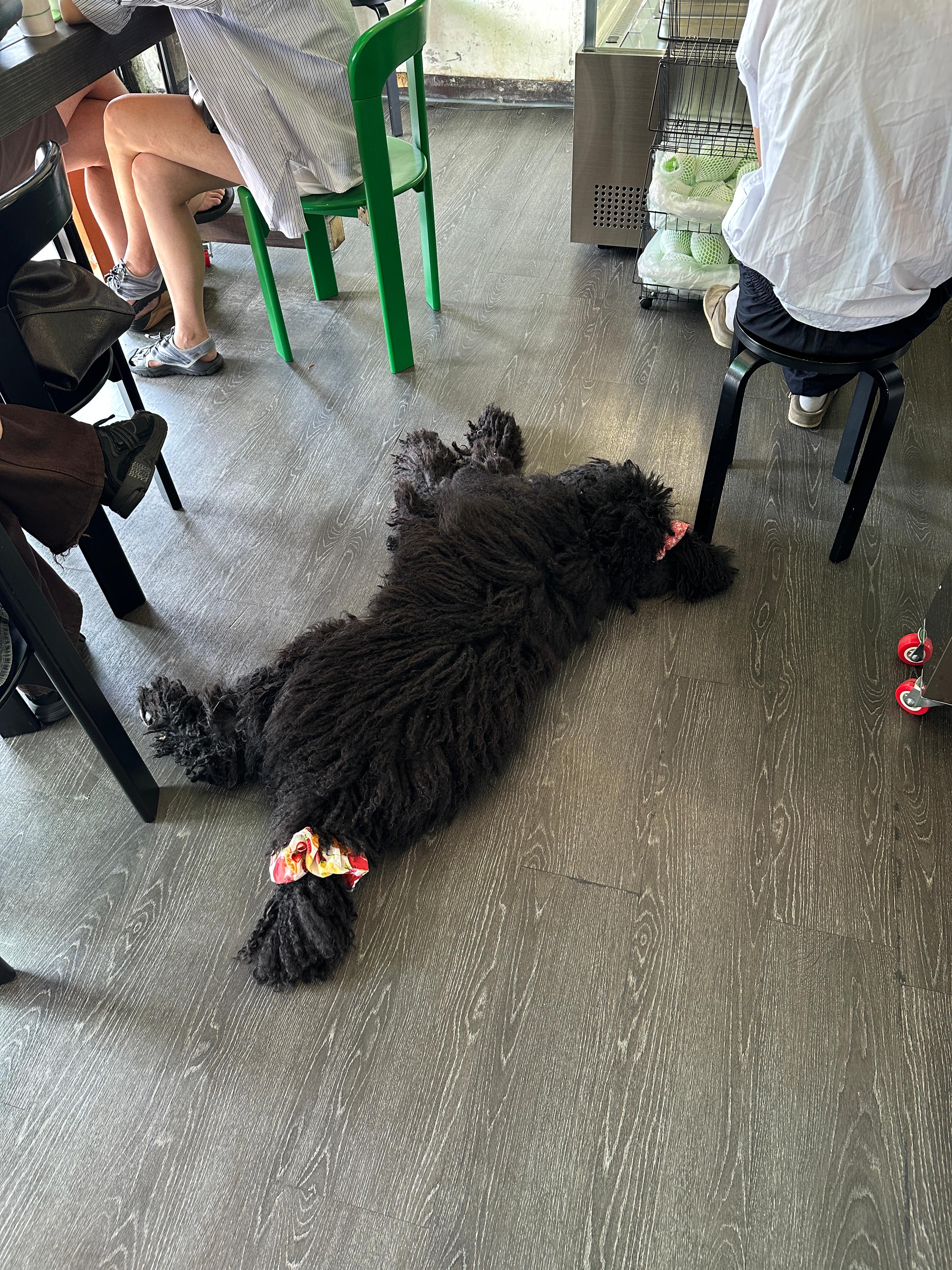 카페가 좁긴 했지만, 오히려 그게 장점처럼 느껴졌다. 그냥 조용히 앉아서 음악 듣고, 왕푸들 구경하고, 아이스크림 먹으며 쉬는 시간이 소소하게 편안했다. 북적이는 큰 카페보다 이런 작고 아늑한 공간이 가끔은 더 좋은 것 같다. 특별한 대화를 나누지 않아도 함께 있는 것만으로 충분한 그런 시간이었다.