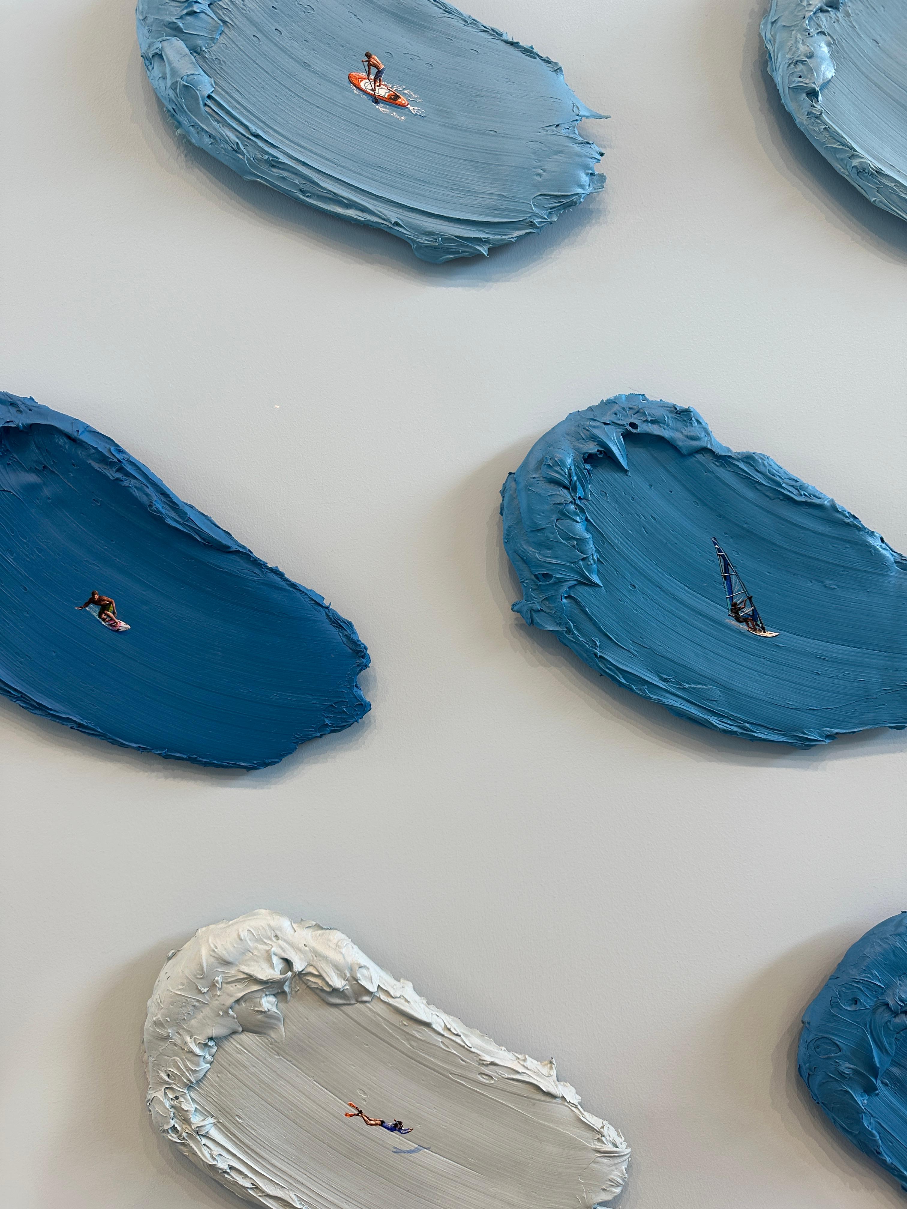 이 작가의 작업 방식이 독특했다. 단순히 페인트를 캔버스에 들이붓고, 그 위에 질감을 추가하는 방식이었다. 처음엔 '이게 뭐지?' 싶었는데, 자세히 보니 그 질감의 결을 따라서 정말 재밌는 그림들이 만들어져 있었다.