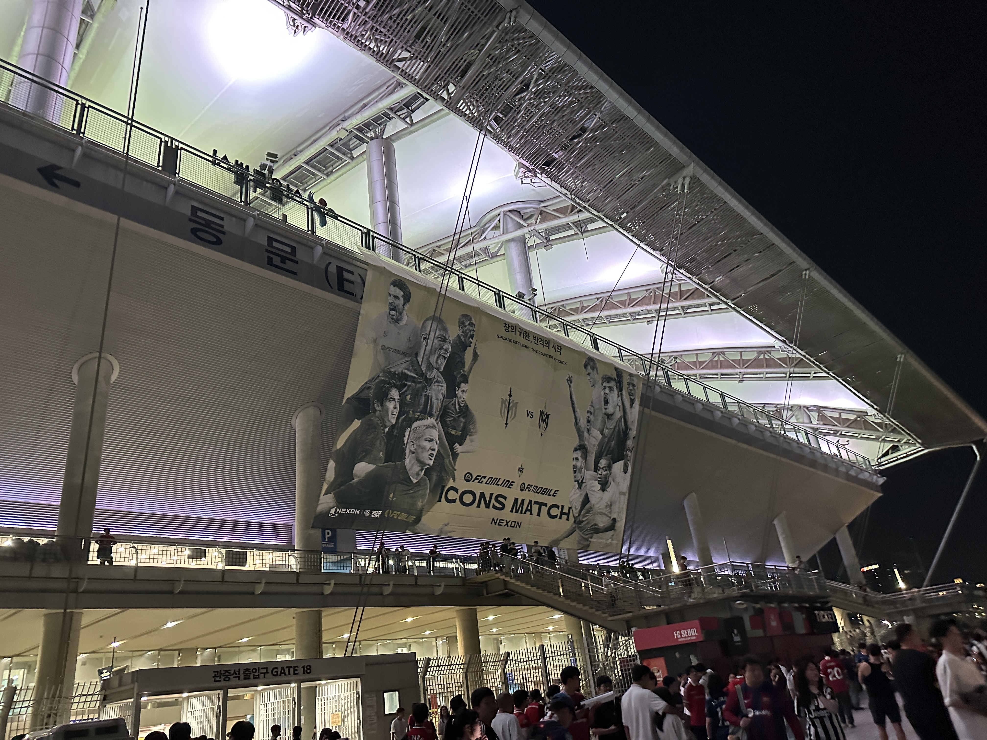 작년에 갔던 아이콘 매치를 올해도 다녀왔다. 날씨 좋은 2회 차 날인 일요일에 갔는데, 작년보다는 조금 여유롭게 도착했다고 생각했는데 이미 관중석은 만석이었다. 선수들이 몸을 푸는 워밍업 시간은 완전히 놓쳐서 볼 수 없었다. 들어가기 전 들뜬 마음으로 인증샷은 남겼다. ㅋㅋㅋ